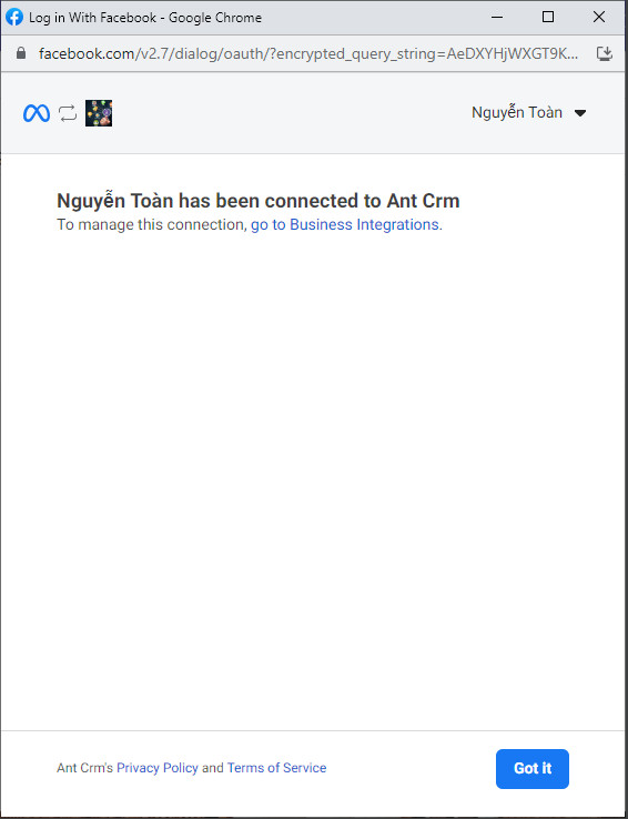 Step 4: Select the business you want to allow Ant CRM to access, then click “Next”